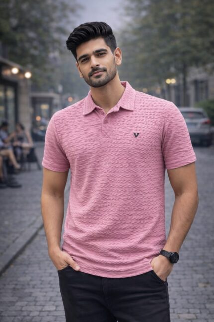Original price was: ₹399.00.₹299.00Current price is: ₹299.00.Premium textured polo t-shirt with stylish and comfortable fit.