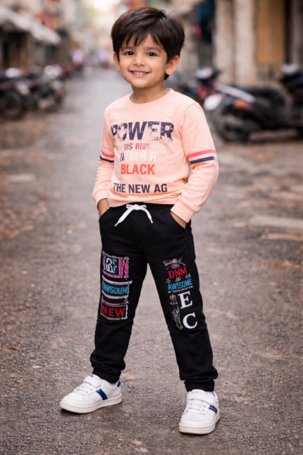 Original price was: ₹120.00.₹99.00Current price is: ₹99.00.Peach & Black Boys Casual Set 👦🔥