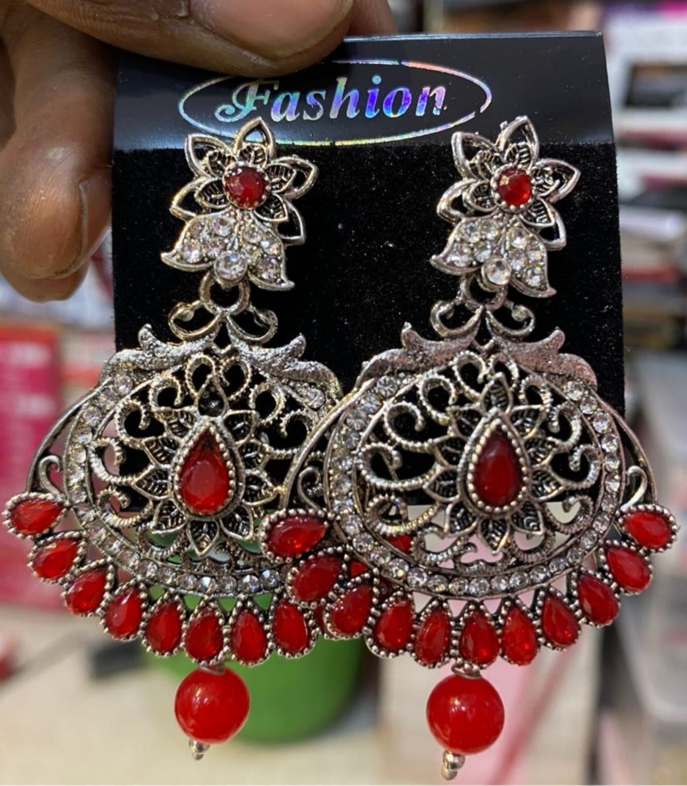 Agar aap ek elegant aur standout earrings dhoondh rahi hain, to yeh red stone jhumke perfect choice hain ❤️