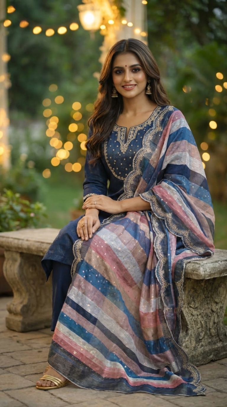Stylish Navy Blue Kurta Set with Dupatta for Women