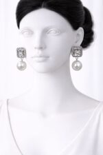 Stylish square stone studs with classic pearl drops — perfect for party & formal wear.