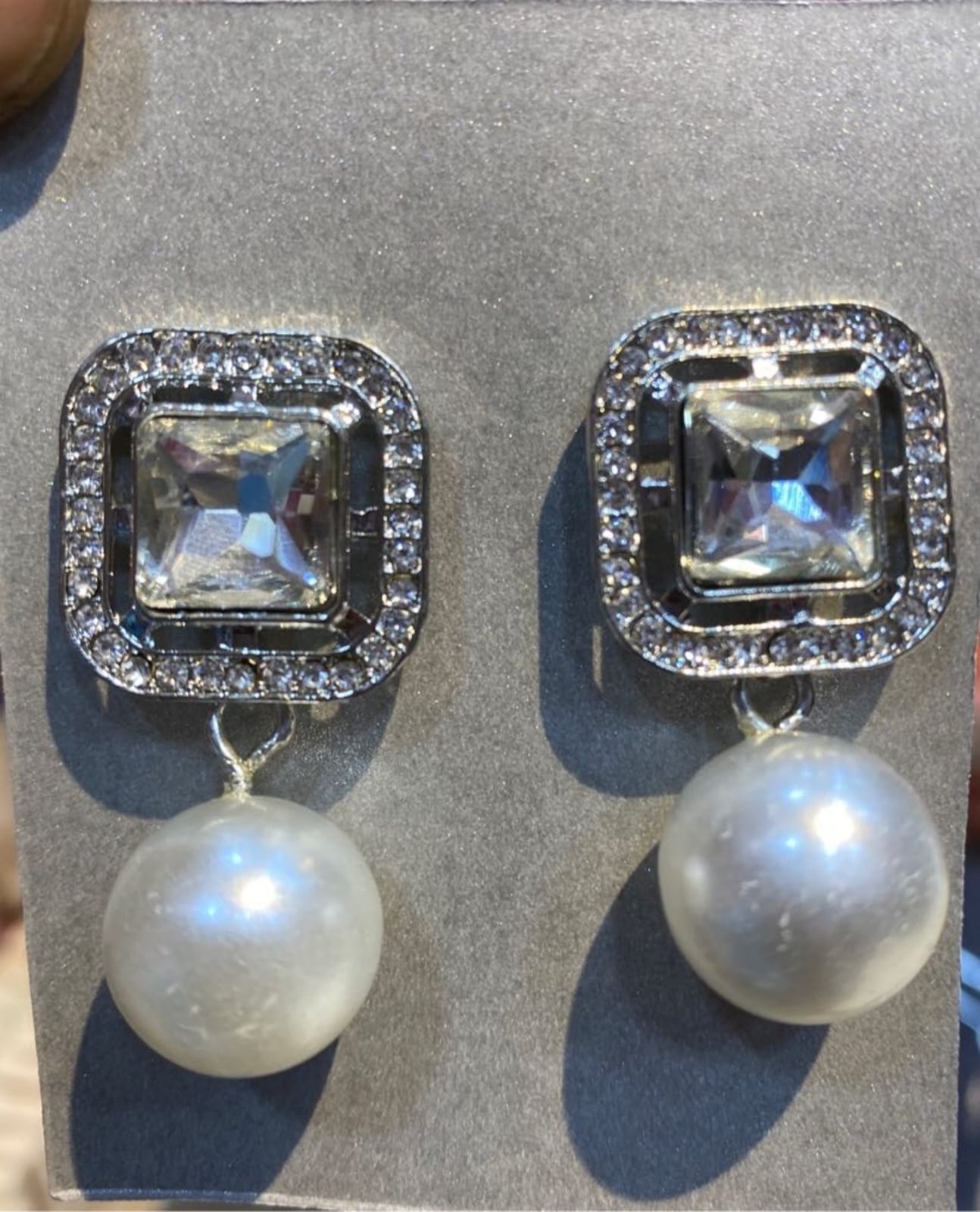 Stylish square stone studs with classic pearl drops — perfect for party & formal wear.