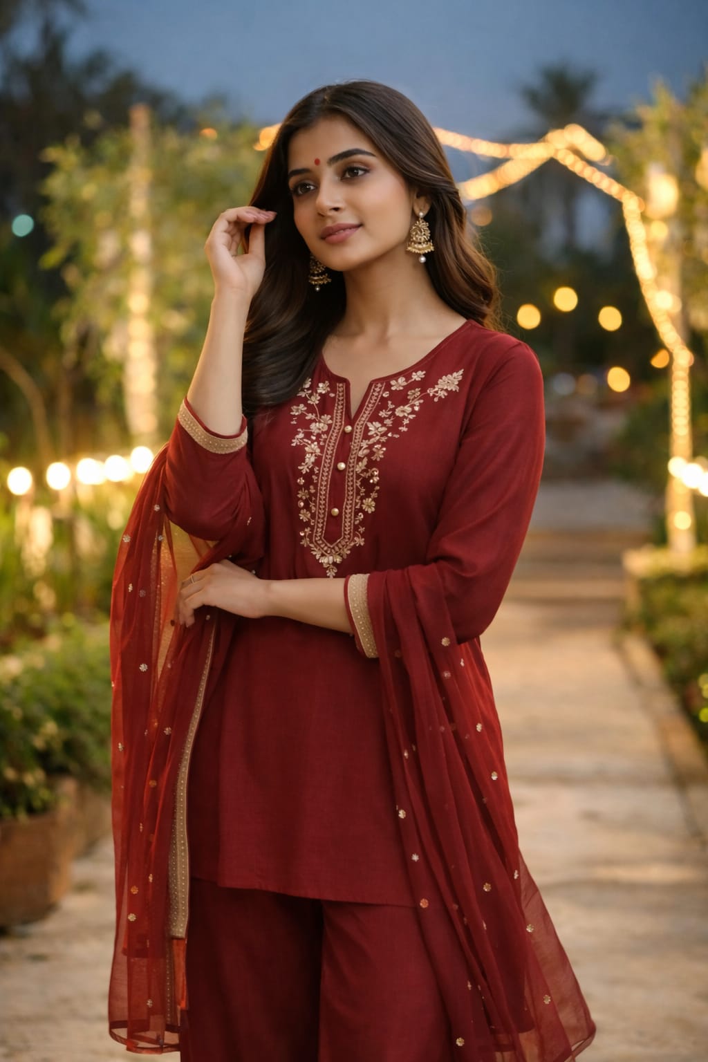 Front embroidery is outfit ko deta hai classy ethnic touch — perfect for: