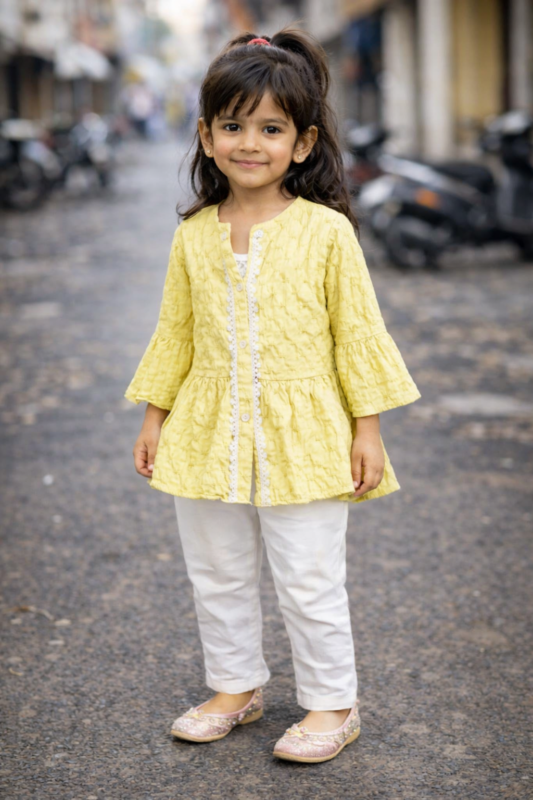 Beautiful Yellow Floral Print Girls Frock Dress