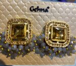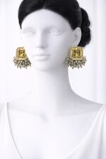 Yeh classy Golden Stone Designer Stud Earrings modern elegance aur traditional charm ka perfect mix hai. Isme square-cut golden stone center diya gaya hai jiske saath delicate grey bead drops attached hain, jo isko subtle yet stylish look dete hain.