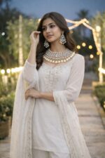 Intricate craftsmanship ke saath design kiya gaya yeh choker set matching statement earrings ke saath aata hai, jo weddings, receptions, festivals aur special occasions ke liye ideal choice hai.