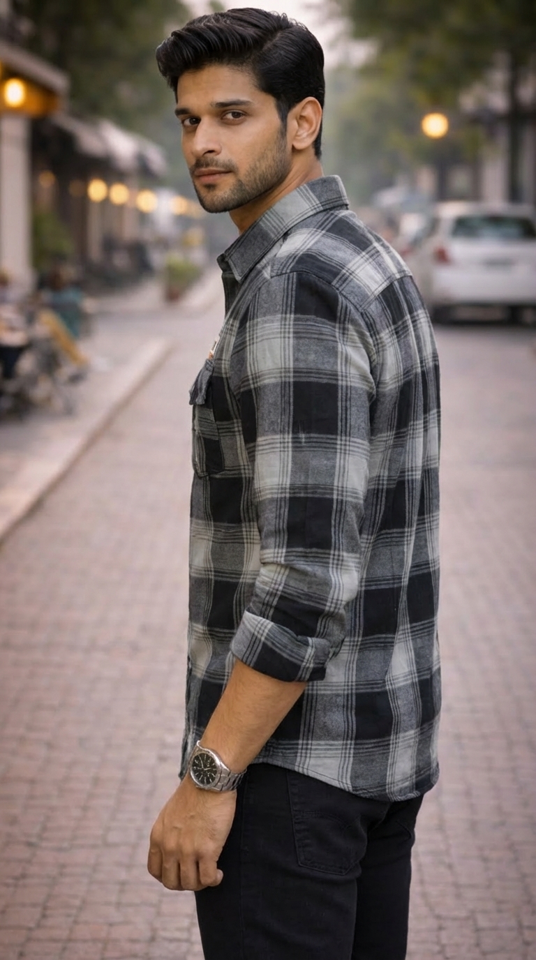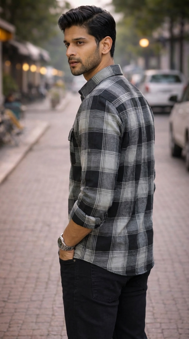 Classic black and grey checkered shirt for men with a rugged casual style. Everyday wear aur smart street look ke liye perfect. 👔🔥