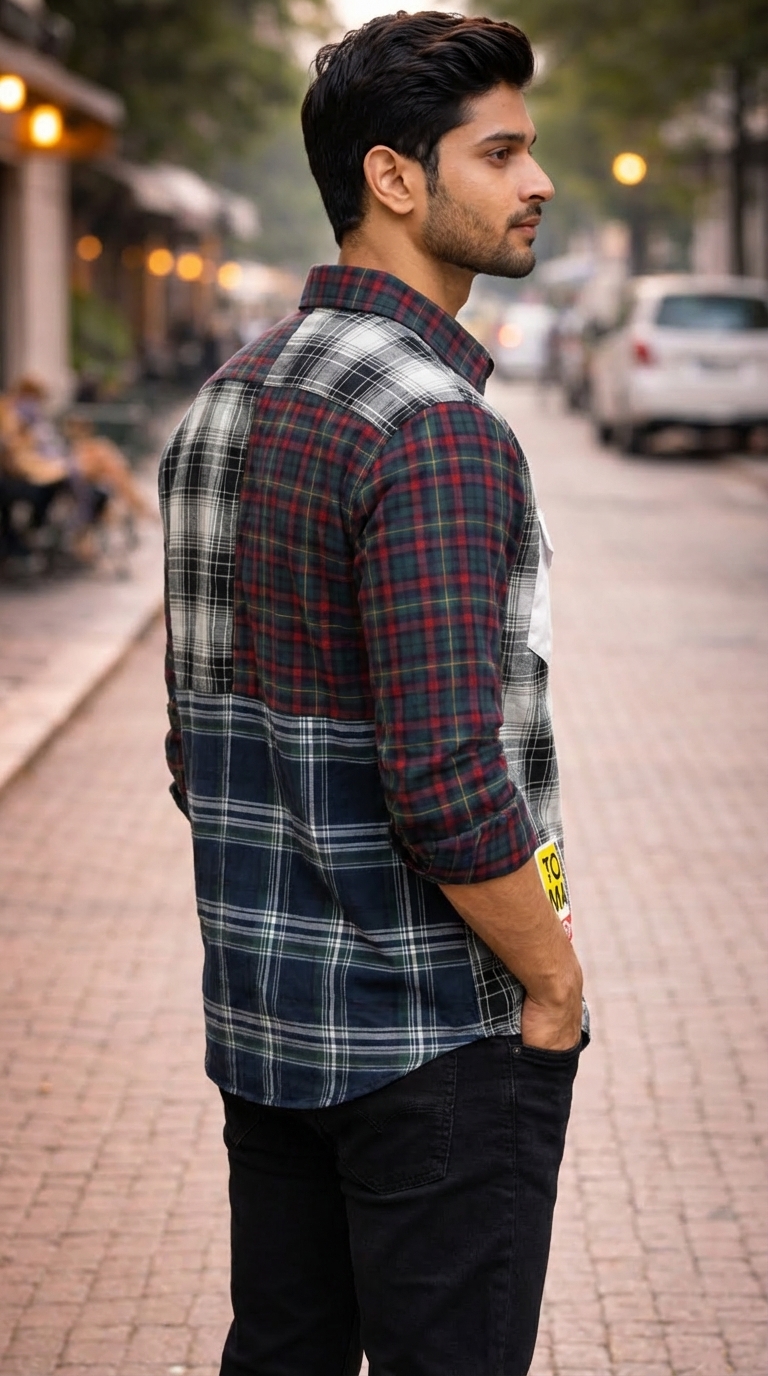 Agar aap ek bold, fashionable aur unique casual shirt dhundh rahe hain jo aapko crowd me standout kare, to yeh patchwork checkered shirt aapke wardrobe ke liye perfect choice hai. 🔥👕✨