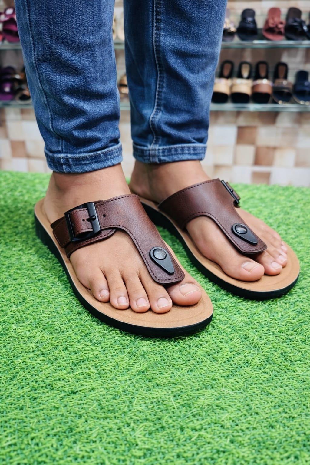 men toe ring slippers, brown sandals men, buckle slippers men, casual footwear men, stylish men chappal, daily wear sandals men, comfortable slippers for men