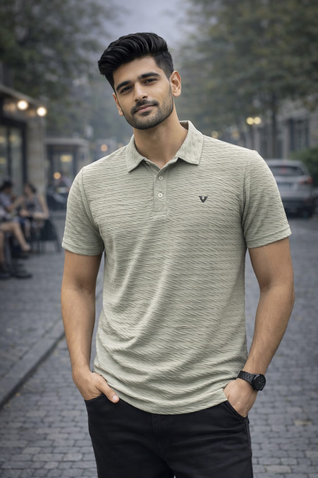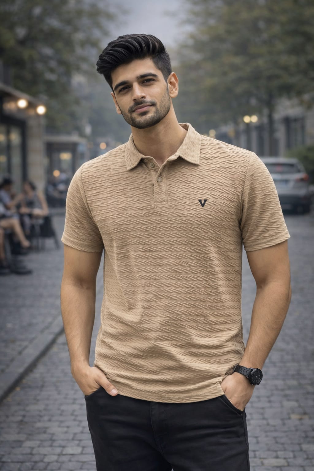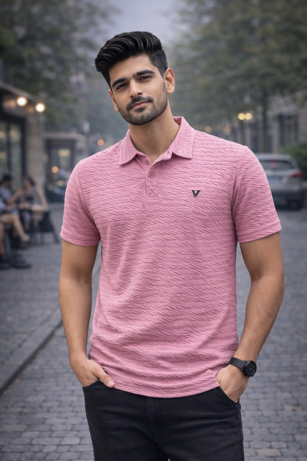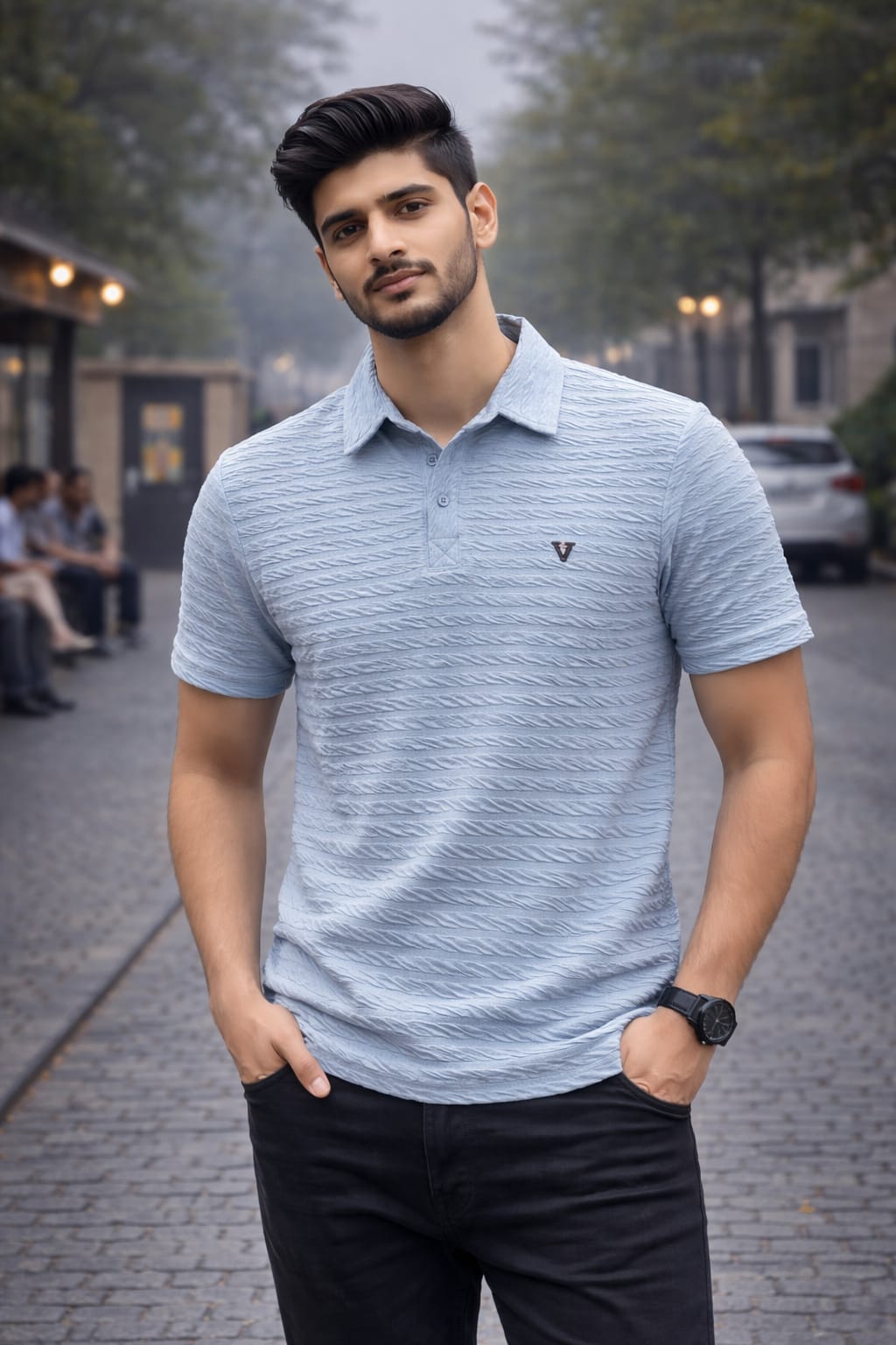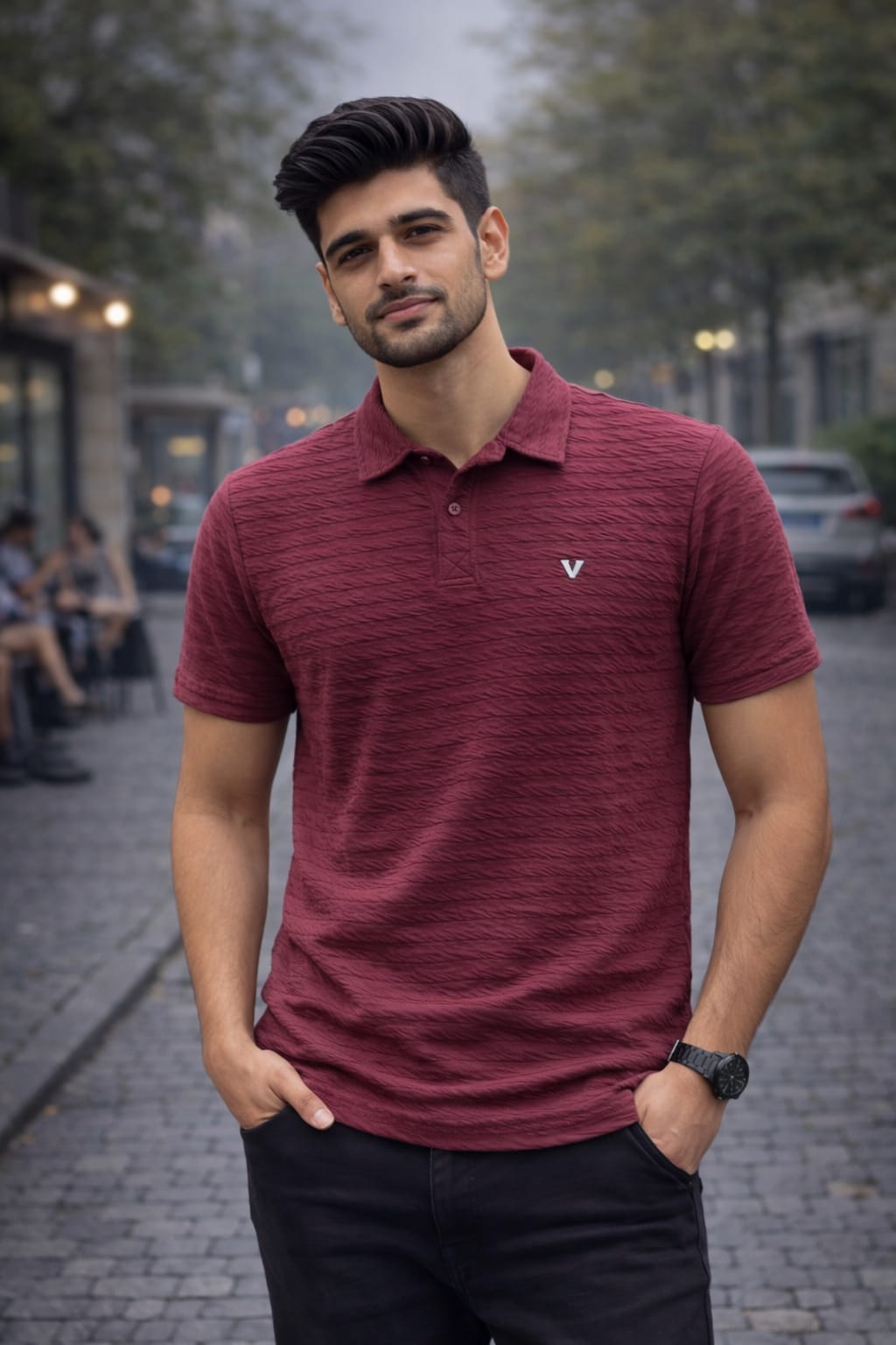 Premium textured polo t-shirt with stylish and comfortable fit.
