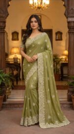 Olive Green Embroidered Designer Saree
