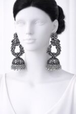 Oxidised Silver Designer Jhumka Earrings