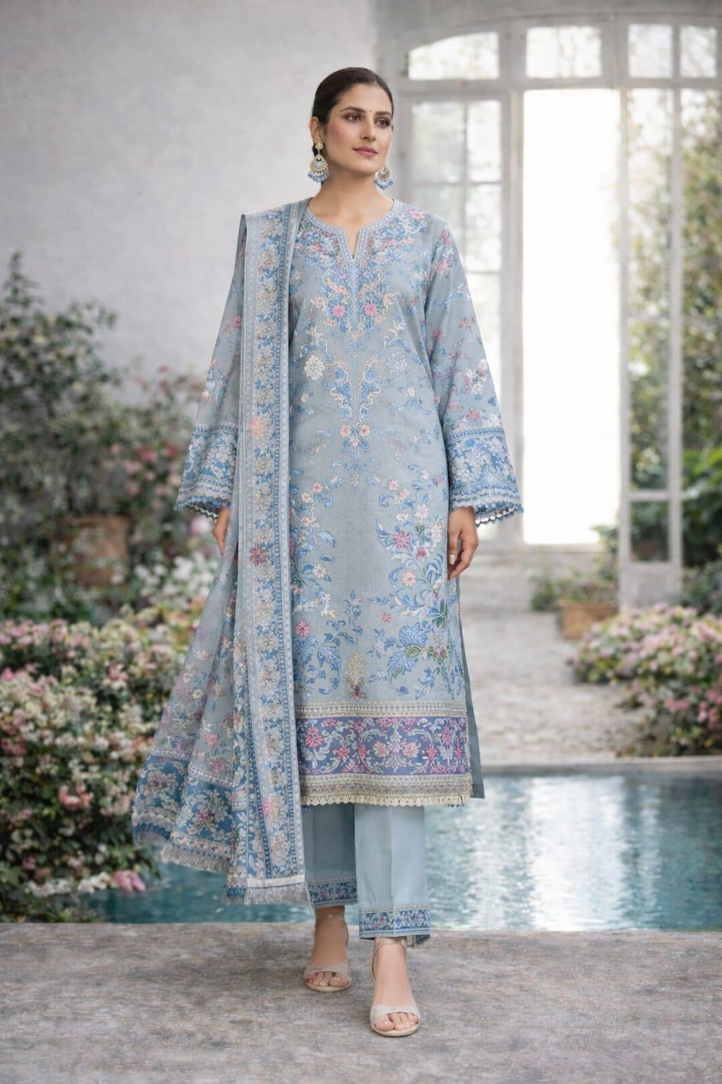 Elegant Embroidered Kurta Set with Dupatta for Women