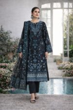 Dark Teal Designer Embroidered Saree