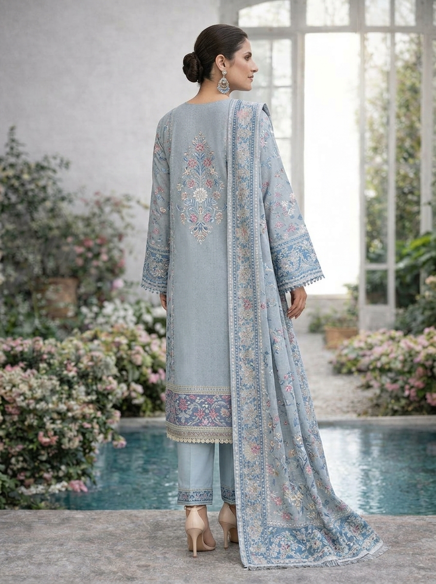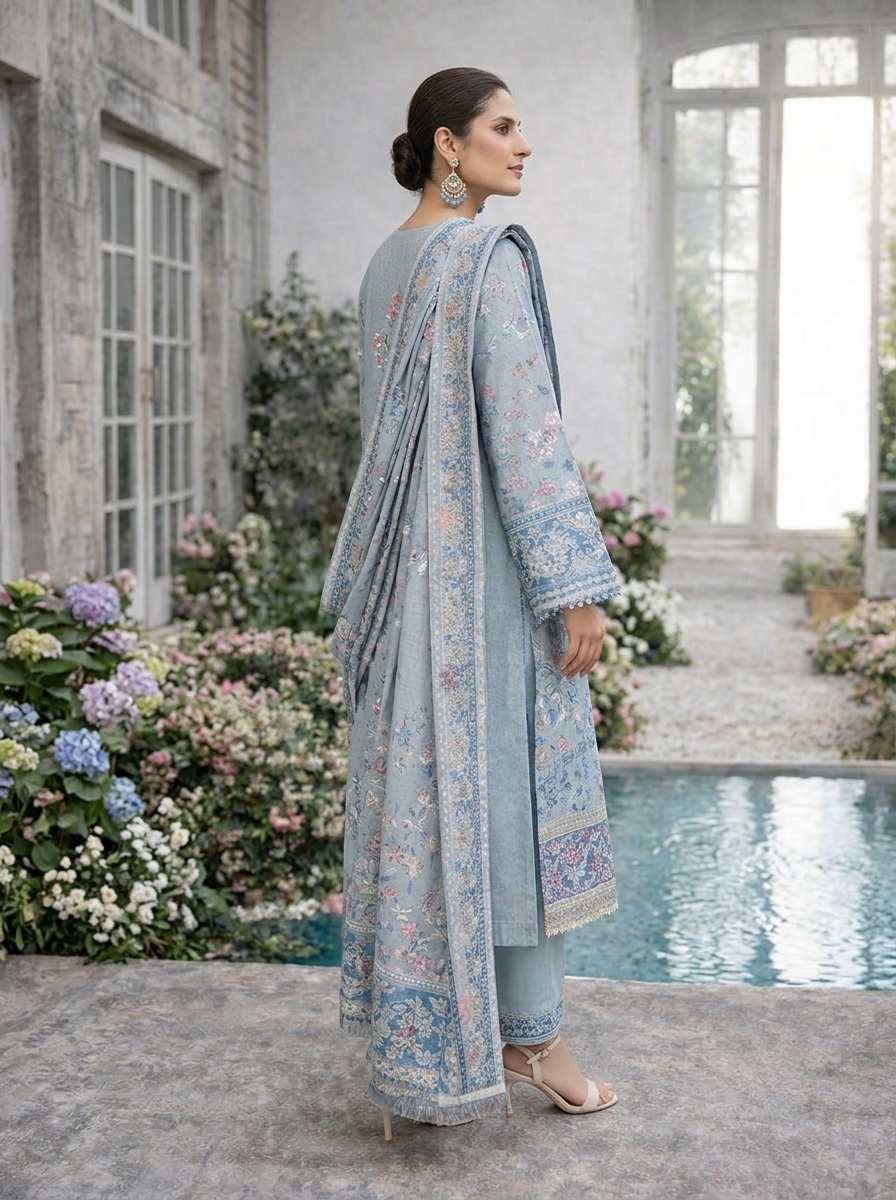 Sky Blue Designer Embroidered Saree