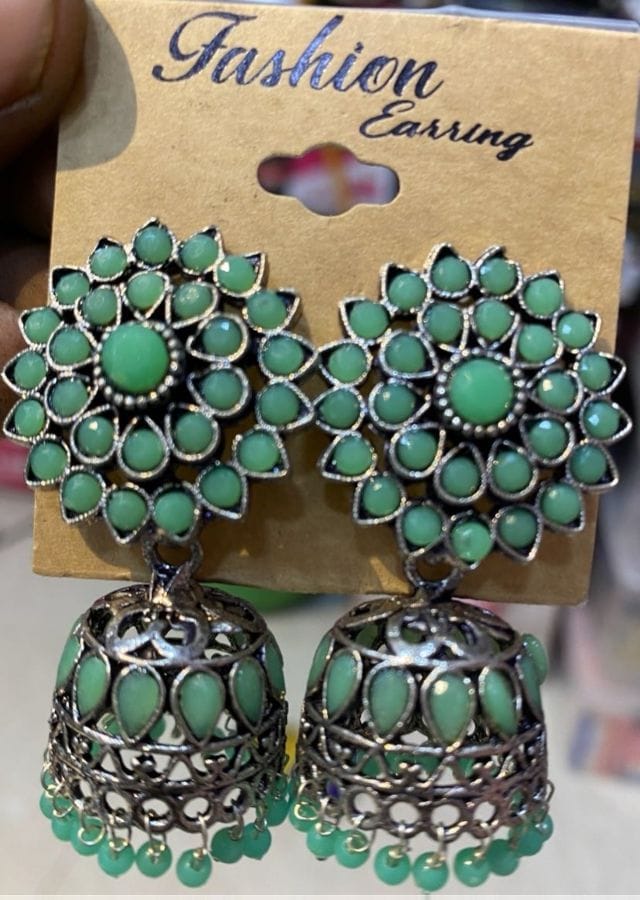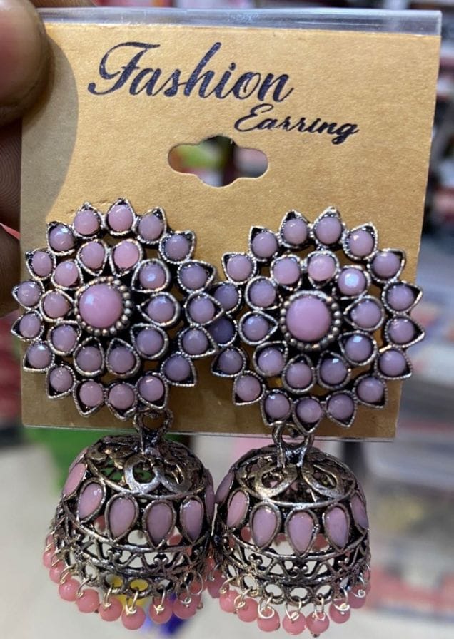 Yeh beautiful Pink Floral Oxidised Jhumka Earrings soft feminine charm aur traditional style ka perfect combination hai. Floral pink stone design ke saath classic oxidised finish diya gaya hai jo isko elegant aur graceful look deta hai.