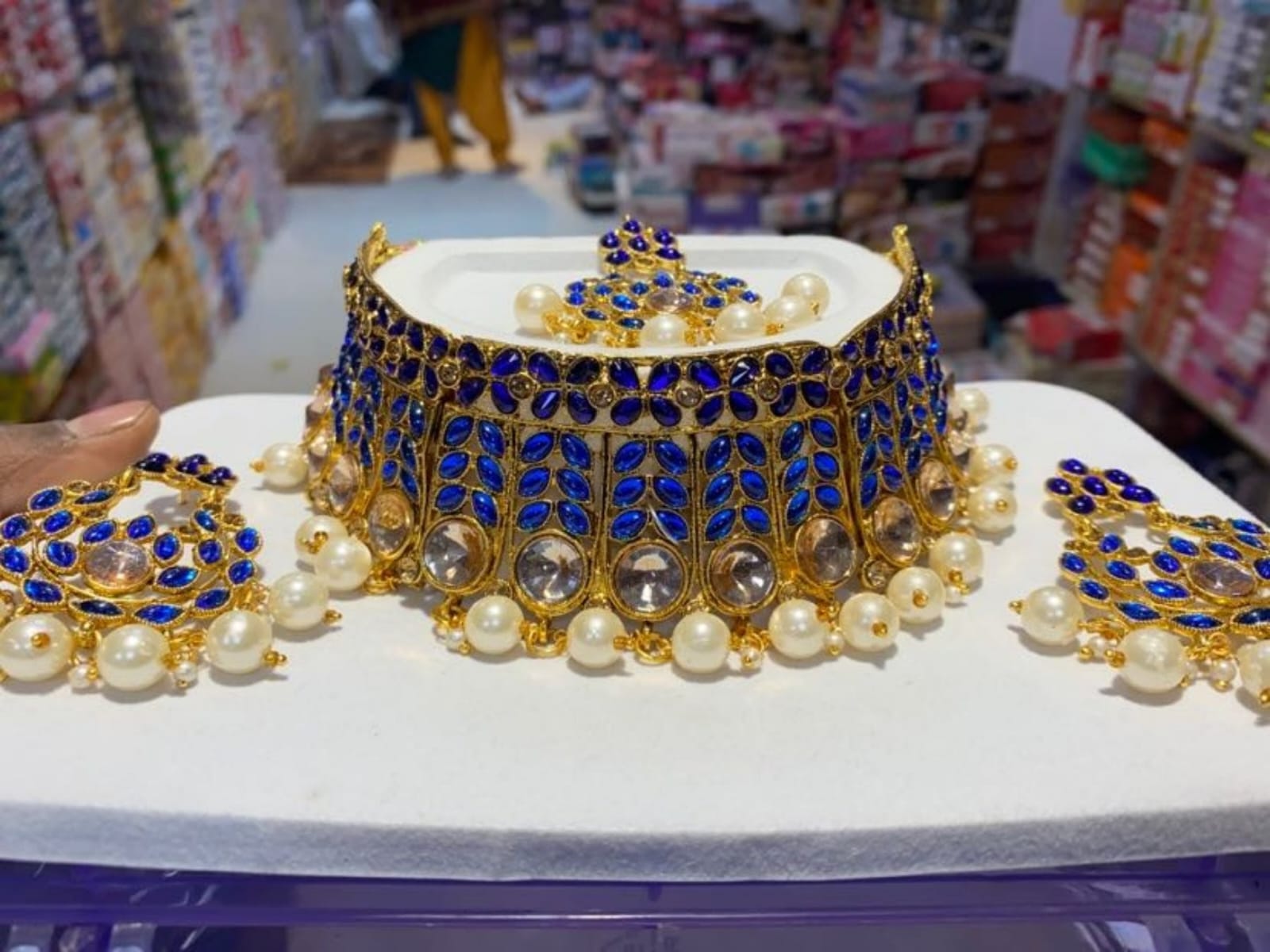 Agar aap ek stylish aur standout jewellery set dhoondh rahi hain, to yeh royal blue choker set perfect choice hai ✨