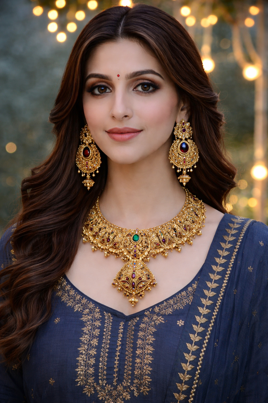 Yeh necklace set specially weddings, festivals, parties aur special occasions ke liye perfect hai. Saree, lehenga aur ethnic suits ke saath yeh jewelry set bahut hi graceful aur royal appearance deta hai. Agar aap traditional aur classy jewelry pasand karti hain to yeh set aapke collection ke liye ek perfect choice hai. ✨👑