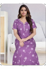 Elegant navy blue printed nighty jo soft, breathable fabric aur relaxed fit ke saath all-day comfort deti hai. Lightweight aur stylish design ke saath yeh daily home wear ke liye perfect choice hai.