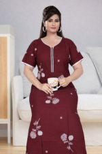 Yeh elegant navy blue printed nighty comfort aur style ka perfect blend hai. Soft aur breathable fabric se bani hui, yeh daily wear ke liye ideal choice hai. Iska relaxed fit aapko poore din aur raat maximum comfort deta hai, jabki iska subtle print design ise simple yet stylish look deta hai. Lightweight fabric hone ki wajah se yeh har season me pehenne ke liye suitable hai — ghar ke use ke liye ek comfortable aur smart option.