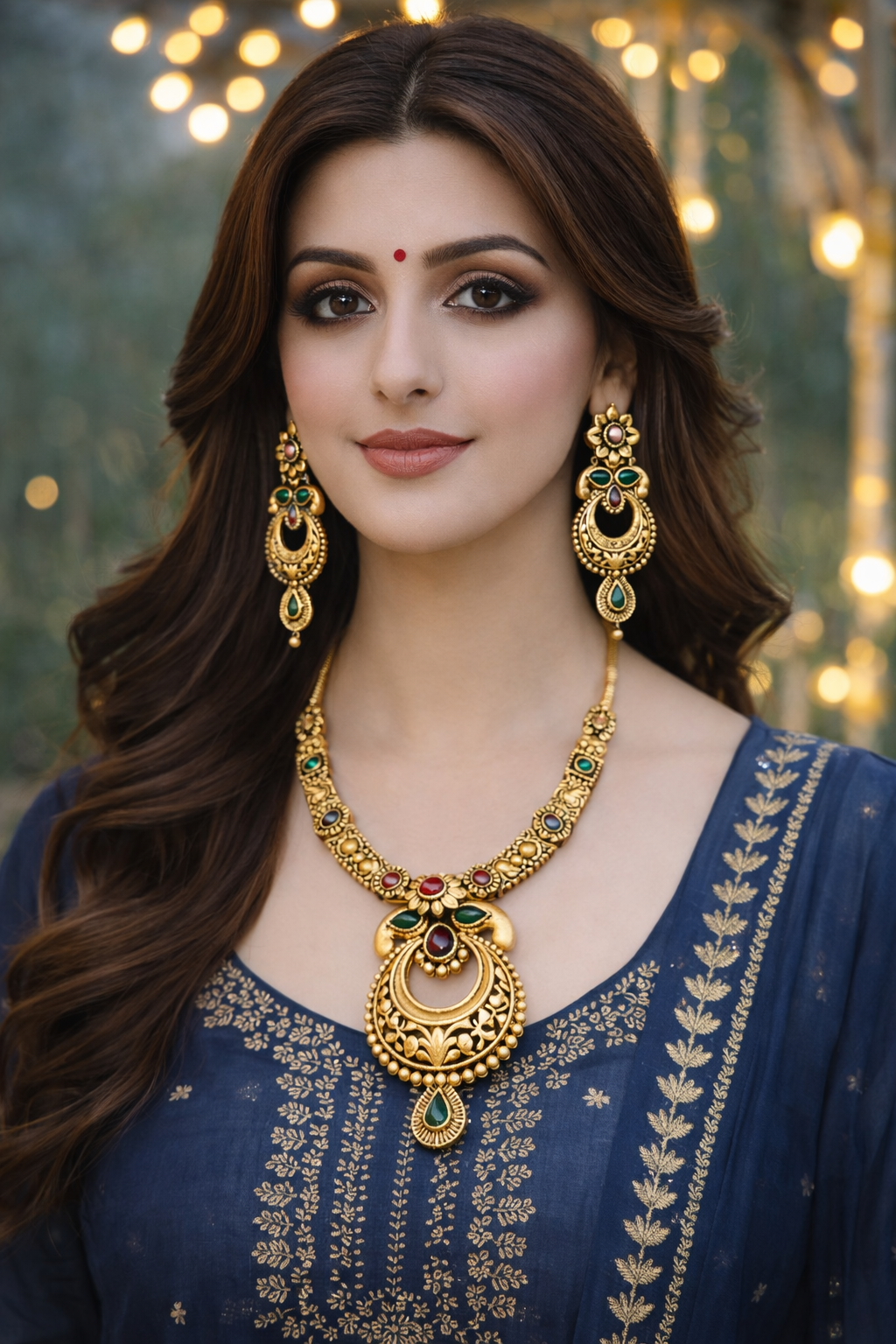 Royal Traditional Gold Necklace Set with Earrings for Women