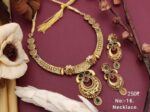Elegant gold plated necklace set with designer pendant and matching earrings, perfect for weddings, festivals aur traditional occasions.