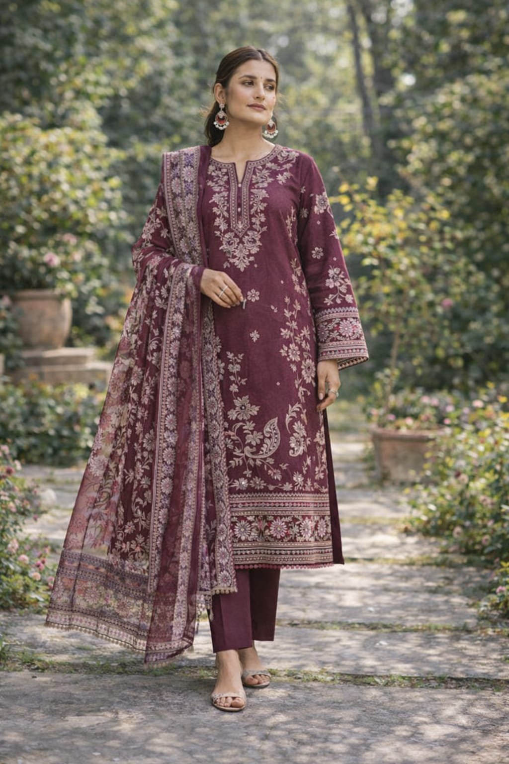 Elegant Maroon Embroidered Salwar Suit with Designer Dupatta for Women