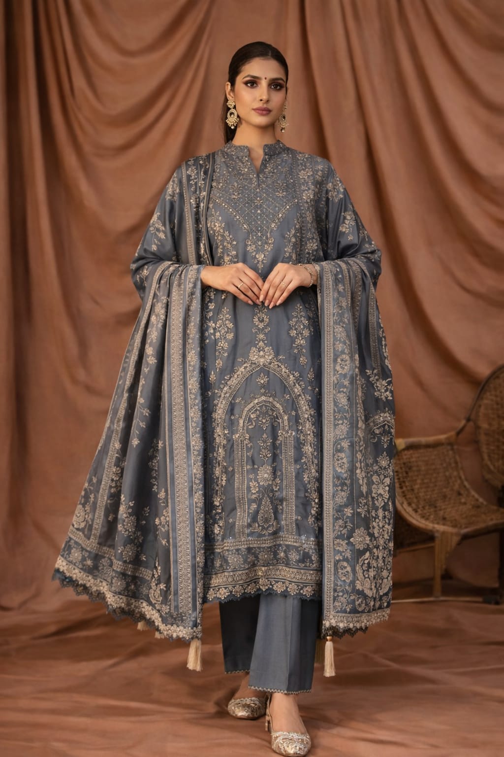 Elegant Embroidered Kurta Set with Dupatta for Women