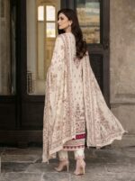 Off White Embroidered Kurta Suit Set with Pink Detailing