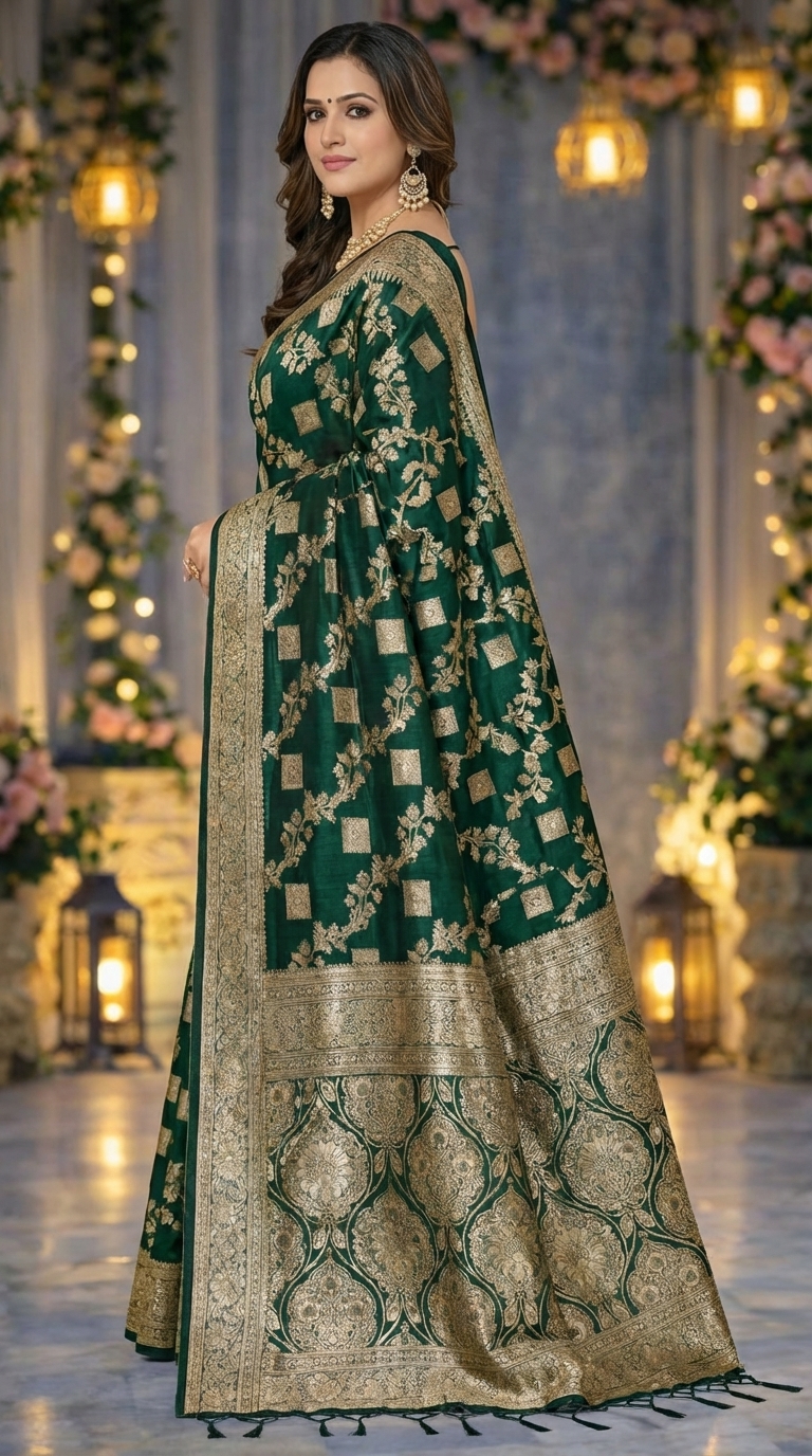 women banarasi saree, dark green silk saree, traditional saree women, wedding saree women, festive saree women, designer saree, ethnic saree women, party wear saree, green banarasi saree, elegant women saree ✨