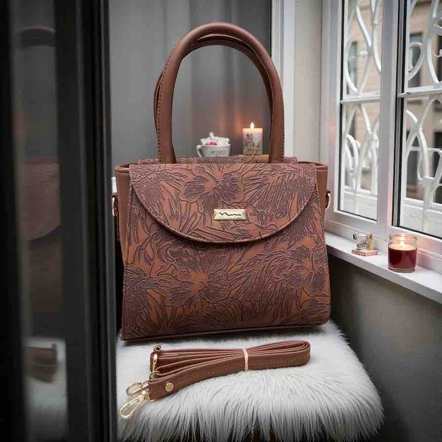 Yeh women’s designer handbag premium floral embossed design ke saath aata hai jo aapko ek classy aur stylish look deta hai. Iska elegant texture aur finishing ise normal bags se alag aur attractive banata hai.