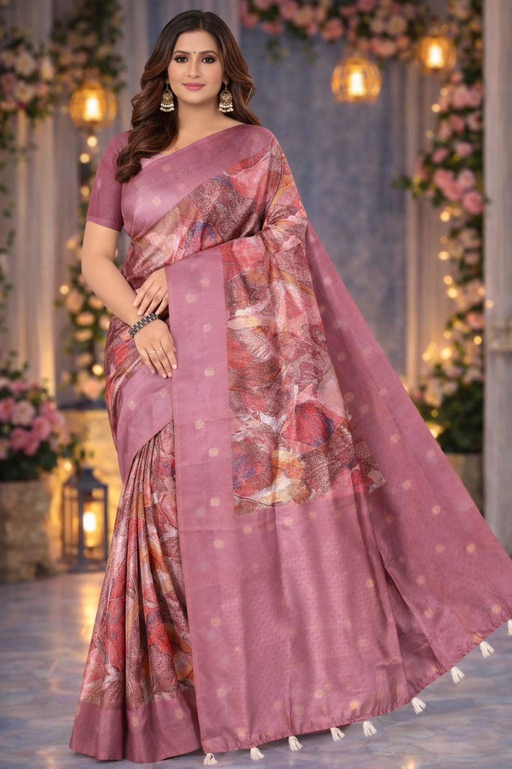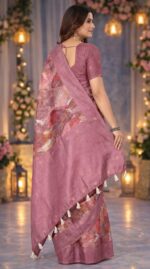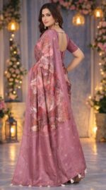 Women’s Dusty Pink Printed Saree – Elegant Ethnic Party Wear