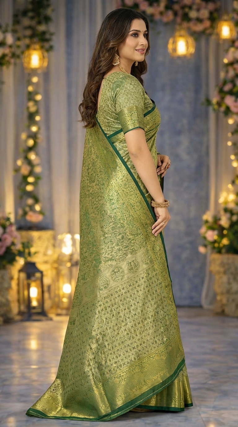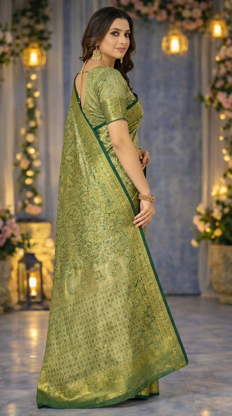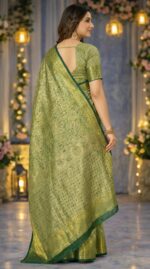 Women’s Green & Gold Banarasi Style Traditional Silk Saree