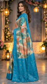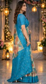 Women’s Sky Blue Printed Silk Saree with Designer Pallu – Elegant Ethnic Wear