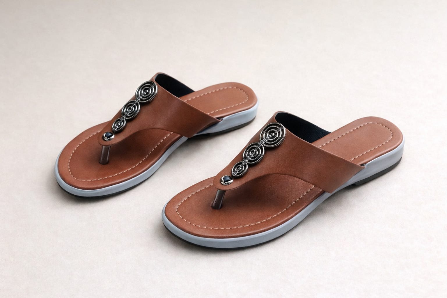 Yeh women’s stylish flat sandal modern aur elegant design ke saath banayi gayi hai jo aapko classy aur comfortable look deti hai. Is sandal par diya gaya attractive strap design aur decorative metal work ise aur bhi stylish banata hai.