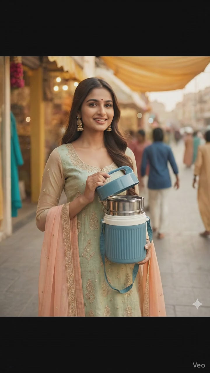 The insulated stainless steel lunch box keeps your meals hot and fresh for long hours.